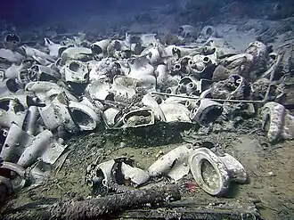 Jolanda (also called Yolanda) was a Cypriot cargo ship built in 1964 in Gijón, Spain by SA Juliana Constructora.[1][2] She was grounded on a reef at Ras Muhammad on 1 April 1980.[3] From 1981 to 1985, the wreck was a popular dive site, but it was lost when it fell off the reef during a storm in March 1987. The wreck remained lost for 20 years until it was rediscovered by Leigh Cunningham and Mark Andrews at a depth of 145–160 metres (476–525 ft) in 2005.[4] Today, cargo from the wreckage, including British toilets, bath tubs and pipes, is visited by recreational divers.[5]