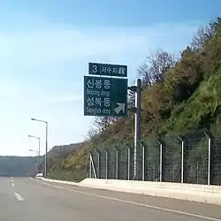 - ^ Korea Ministry of Government Legislation (2008-01-03). 고속국도 노선 지정령 [Order on assignment of Expressway route]. law.go.kr (in Korean). Korea Ministry of Government Legislation. Archived from the original on 18 October 2014. Retrieved 11 November 2014.