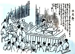 The main direction was the kōdan, the narrative stories. The beginning goes back to the beginning of the Edo period, to the Taiheiki-yomi (太平記読), the recitation of the Taiheiki. In addition, there were military stories such as the "revenge stories" (仇討物, Adauchi-mono), "chivalric stories" (俠客物, Kyōgaku-mono), "civic stories" (世話物), etc. When this form of lecture developed, it was called Kōshaku (講釈), roughly "Explanatory Lectures", and was only common in places where the bushi (武士), i.e. the Japanese nobility, played a role in which the common people were interested. The lecturers, called hanashi-ka (噺家), corresponded to the rakugo narrators of the present day.