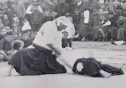 Sugino was born in Naruto village, Chiba prefecture, in December 1904. When he was a child, his family moved to Tokyo. He first encountered martial arts at Keio University, where he enrolled in 1918; here he joined the judo, kendo, sumo and kyūdō clubs, among others. In particular, he studied judo under Kunisaburo Iizuka, one of Japan's top collegiate coaches at the time.[2] Discovering a proficiency for judo, he started his own dojo (the Kodokan Judo Shugyojo) in Kawasaki after a brief stint as a bank clerk.[3]