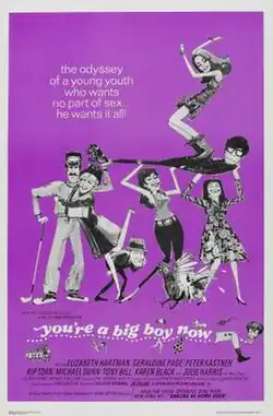 You're a Big Boy Now is a 1966 American comedy film written and directed by Francis Ford Coppola. Based on David Benedictus' 1963 novel of the same name, it stars Elizabeth Hartman, Peter Kastner, Geraldine Page, her spouse Rip Torn, Karen Black, Tony Bill, Michael Dunn, and Julie Harris. Page was nominated for an Oscar and Golden Globe Award for her performance, while Hartman and the film were also nominated for the latter.
