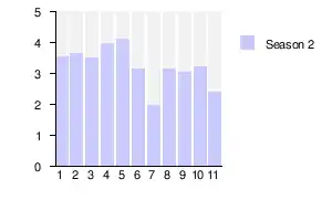 - In the tables below, blue marks the lowest ratings in each season and red marks the highest ratings.