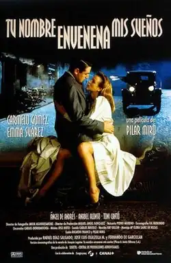 Your Name Poisons My Dreams (Spanish: Tu nombre envenena mis sueños) is a 1996 Spanish thriller film directed and co-written by Pilar Miró consisting of an adaptation of the novel Tu nombre envenena mis sueños by Joaquín Leguina. It stars Carmelo Gómez and Emma Suárez alongside Ángel de Andrés, Anabel Alonso and Toni Cantó.