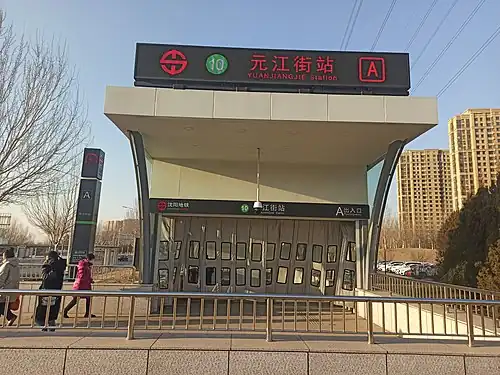 Yuanjiangjie (Chinese: 元江街站; pinyin: Yuánjiāngjiē Zhàn) is a station on Line 10 of the Shenyang Metro.[1] The station opened on 29 April 2020.[2]