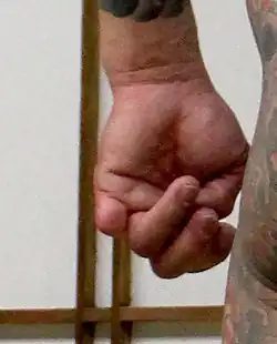 Yubitsume is also a sign of surrender by the defeated in a yakuza war. The reason for this is that in Japanese swordsmanship (kendo and iaido), the sword cannot be held tightly, and the little finger's grip is the tightest on the hilt. A little-finger amputee was therefore unable to grip his sword properly, weakening him in battle and making him more dependent on the protection of his boss, and thus overall weakening the family's ability to fight in a war.[2] As such, it can be seen as a sign of insurance of compliance with the terms of truce imposed upon the loser by the victor.