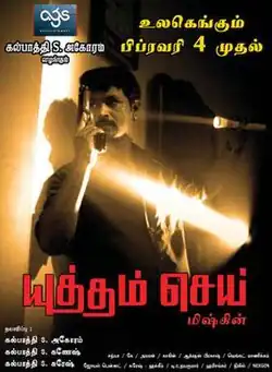 Yuddham Sei (transl. Wage War) is a 2011 Indian Tamil-language neo-noir mystery thriller film written and directed by Mysskin.[1] It stars Cheran and debutant Dipa Shah alongside an ensemble cast including Y. G. Mahendra, Lakshmi Ramakrishnan, Jayaprakash, and Selva in supporting roles. The film was released on 4 February 2011 and was remade in Kannada as Gharshane in 2014.