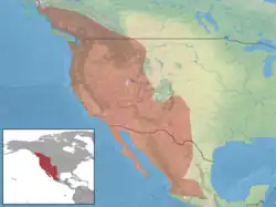 First described from specimens captured near Fort Yuma, the Yuma myotis is found throughout much of western North America.[1] It is found in a variety of western lowland habitats, from arid thorn scrub to coniferous forest, but always close to standing water such as lakes and ponds.[5] When not close to a body of water, the Yuma Myotis can be found in the thousands roosting in caves, attics, buildings, mines, underneath bridges, and other similar structures. There is little information on the migration of this species, but there have been recordings in Texas during the winter season.[6][7]