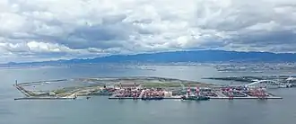 There are two high-standard container terminals with a depth of 15 meters in the south of Yumeshima, but most of the area is unoccupied. The southern end of Yumeshima is positioned as a logistics center. In the early 2000s, the island was proposed as the Olympic Village in Osaka's bid for the 2008 Summer Olympics.[2]
