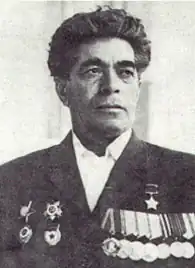 Yusif Madat oglu Sadykhov (Azerbaijani: Yusif Mədət oğlu Sadıqov; 1918 – 11 June 1971) was an Azerbaijani Red Army Starshina and Hero of the Soviet Union. Sadykhov was a gun commander in an artillery battalion and was awarded the title for his actions during the Vistula–Oder Offensive. In the offensive, he was credited with knocking out several German armored vehicles and suppressing firing positions, enabling the creation of a bridgehead. He was discharged in 1945 and returned to Tovuz, becoming director of an oil depot.[1]
