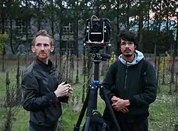 Initially using their own 35 mm cameras, the photographers each purchased a 4 × 5-inch camera and returned to Detroit in October 2006 to continue their series.[1] These cameras required a much lengthier and more meticulous set-up process, which led Marchand and Meffre to settle on using just one camera. According to them, this was "the fairest and the most motivating way of producing an image".[9] Each image was discussed and agreed on before taking it, thus sealing the formation of their duo. The camera allows them to make large prints.