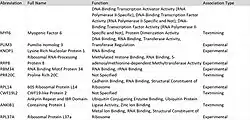 Among all of the proteins ZFP62 is thought to interact with, only a five that appear on multiple databases, and therefore have a higher likelihood of interaction: The KNOP1, PUM3, RBM34, RPL14, and RPL37A proteins. All of these proteins appear to have RNA binding functionality, but otherwise seem reasonably distinct from one another.[26] [27] [28] [29] [30]