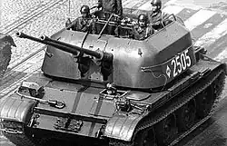 The ZSU-57-2 Ob'yekt 500 is a Soviet self-propelled anti-aircraft gun (SPAAG), armed with two 57 mm autocannons. 'ZSU' stands for Zenitnaya Samokhodnaya Ustanovka (Russian: Зенитная Самоходная Установка), meaning "anti-aircraft self-propelled mount", '57' stands for the bore of the armament in millimetres and '2' stands for the number of gun barrels. It was the first Soviet mass-produced tracked SPAAG after World War II. In the USSR, it had the unofficial nickname Sparka (Russian: Спарка), meaning "twin mount," referring to the twin autocannon with which the vehicle is armed.[10]