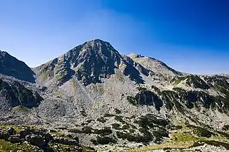 Zabat (Bulgarian: Зъбът, meaning The Fang) is a 2,688 m high peak in the Pirin mountain range, south-western Bulgaria. Built up of granite, it is located in the northern part of Pirin in the central section of the Kamenitsa secondary ridge.[1] Seen from Begovitsa cirque its shape resembles a tooth, hence its name.[1]