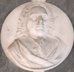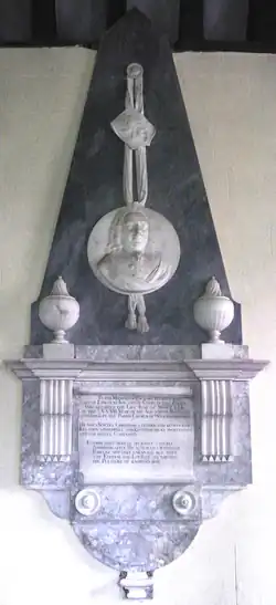 Zachary Hamlyn died on 22 June 1759, aged 82. As requested in his will, he was buried in the chancel of the parish church of Wolfardisworthy,[26] but his mural monument is in Clovelly Church.[27] A fine painting of him by Joseph Highmore (1692–1780) was destroyed in the fire at Clovelly Court in 1789,[28] but an engraving of it (but possibly of his friend the author Samuel Richardson) by James MacArdell (c.1729–1765) exists in the National Portrait Gallery.[29] A relief sculpted portrait bust exists on his mural monument in Clovelly Church.