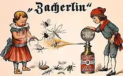 Johann Zacherl began importing insecticide made from pyrethrum from Tiflis in 1842. In 1870, he started to produce moth powder in Unterdöbling, which he sold under the name Zacherl’s insect-killing tincture (Zacherlin). By 1873, the four employees in his factory were already producing 600 tonnes of Zacherlin per year, which were sold in Zacherl's shops in Paris, Istanbul, Amsterdam, London, New York and Philadelphia.