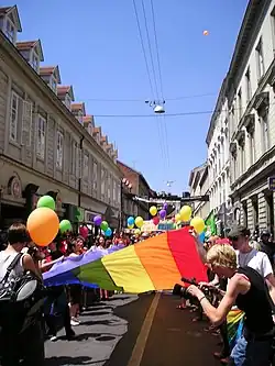 Zagreb Pride (Croatian: Zagrebačka povorka ponosa) is the annual LGBTIQ+ pride march in the city of Zagreb, Croatia, which first took place in 2002, as the first successful pride march in Southeast Europe.[1] Zagreb Pride organizers say their work was inspired by the Stonewall Riots and the Gay Liberation Front.[2] It is self-identified as LGBTIQ+ march and therefore in 2003 changed its name from Gay Pride Zagreb into Zagreb Pride.[3] The Pride was organized by a volunteer-based and grass-roots Organizing Committee that was formed each year. A new organization founded in 2008 as a non-governmental organization Zagreb Pride that also registered the use of the name as a brand. The organization is a member of InterPride, EPOA, IGLYO, ILGA-Europe and in 2010, together with Lesbian Organization LORI and Domino, it was the founding member of Croatian first national LGBT association, Center for LGBT Equality (Croatian: Centar za LGBT ravnopravnost).[4][5] Pride receives funding from the City of Zagreb and[6] a number of international human rights organizations and embassies.[7][8]
