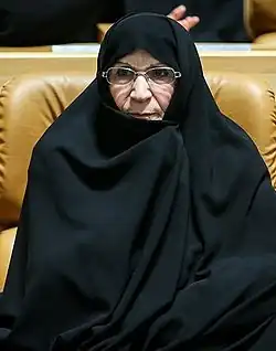 Sayyida Zahra Mostafavi Khomeini (Persian: زهرا مصطفوی خمینی; born 13 November 1940) is an Iranian politician and educator. The daughter of Ruhollah Khomeini, the leader of the Iranian Revolution and subsequent Supreme Leader of Iran, Mostafavi was awarded a PhD in philosophy from the University of Tehran, where she subsequently taught.[1][2] Mostafavi has been called the "most prominent" of Khomeini's three daughters, and has become a prominent supporter of women's rights in Iran in addition to Palestinian causes.[3]