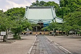Zaimokuza (材木座) is an area within the Kamakura, Kanagawa Pref., in Japan that runs along the sea from Cape Iijima near Kotsubo harbor to the estuary of the Namerigawa. The relation between the beach's name and that of its neighboring areas is complex. Although Yuigahama is in fact the entire 3.2 km beach that goes from Inamuragasaki to Zaimokuza's Iijima cape, the name is usually used to indicate just its half west of the Namerigawa river, while the eastern half is called Zaimokuza Beach (材木座海岸).[1] This is the reason why, although the beach gives its name to only the west part of the beachside area, traces of the name Yuigahama can be found also in Zaimokuza (for example in Moto Hachiman's official name, Yui Wakamiya).