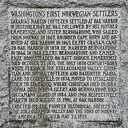 - ^ a b c d e Toftezen Memorial — Washington's First Norwegian Settlers (Memorial). Stanwood, Washington: Pioneer Historical Society of the Stillaguamish Valley, Sons of Norway. May 27, 1939. Retrieved April 18, 2023.