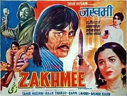 Zakhmee is a 1975 Hindi movie. Produced by Tahir Hussain, the film was directed by Raja Thakur.[1] It stars Sunil Dutt, Asha Parekh, Rakesh Roshan, Reena Roy, Tariq, Helen, Johnny Walker, Agha, Iftekhar in pivotal roles.[2] The music was composed by Bappi Lahiri, who later said that this film was his first claim to fame. The film performed "Above Average" at the box office, according to one source.[3]