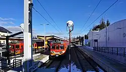 Zakopane railway station is a railway station in Zakopane (Lesser Poland), Poland and the terminus of PKP rail line 99. The station was opened in 1899 and electrified in 1975. It is also the highest situated staffed railway station in Poland at 835 metres above sea level. As of 2023, it is served by Koleje Śląskie (Silesian Voivodeship Railways), Polregio, and PKP Intercity (EIC, InterCity, and TLK services).