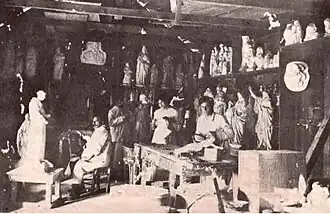 His wife Adelina helped him in his artistic production, taking responsibility for painting the statues. After Michelangelo's death, on April 10, 1940, Adelina took over the studio and carried it on together with her partner Nilo Tomasi. At this time, Ludovina Valesca Reis took over the creation of the statuary, employing several assistants, among them Mário Spiandorello, André Schiavo, and Nadyr dalle Molle. Adelina died on September 20, 1994, Ludovina retired in 2003, and by this time the studio was in decline. The following year, without an assured leadership, the studio closed its doors, after having populated the entire region with images. Part of the remaining collection was dispersed, but about a thousand pieces, among statues, molds and tools, were acquired by the Festa Nacional da Uva S.A., which set up a museum in his memory, the Zambelli Atelier Memorial, in its exhibition park.[6][7]