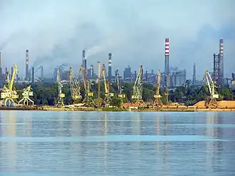 The opening of the Kichkas Bridge at the start of the 20th century, the first rail crossing of the Dnieper, was followed by the industrial growth of Zaporizhzhia.[6] In 1916, during World War I, the DEKA Stock Association transferred its aircraft engine manufacturing plant from Saint Petersburg to Zaporizhzhia.[7]