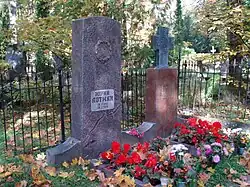 Yuri Lotman and Zara Minc [Mints] grave at Raadi cemetery in Tartu; bronze cross by Stanislav Netšvolodov