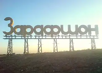 Zarafshon (Uzbek: Zarafshon / Зарафшон, Persian: زرافشان) is a city in the center of Uzbekistan's Navoiy Region. Administratively, it is a district-level city, that includes the urban-type settlement Muruntau.[2] It has an area of 20 km2 (7.7 sq mi)[3] and 85,100 inhabitants (2021).[1] Located in the Kyzylkum Desert, it receives water from the Amudarya by a 220-km pipeline.