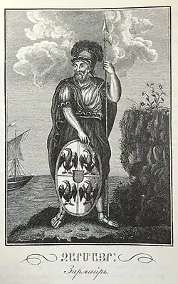Zarmayr (Armenian: Զարմայր) was a legendary Armenian patriarch descended from Hayk. He appears only in the history of Movses Khorenatsi (5th century or later), who writes that Zarmayr was sent by the Assyrian Teutamos to take part in the Trojan War on the side of the Trojans at the head of "a small Ethiopian army" and was killed (Khorenatsi adds: "by Achilles, I would like to think, and not by any other hero"). He was the successor of Hawroy and the predecessor of Perch as patriarch. According to Ferdinand Justi, his name is composed of the words zarm 'family, line' and ayr 'man'. H. Avkerian identifies Zarmayr with Memnon, who according to Eusebius and Diodorus commanded an Assyrian and Ethiopian army in the Trojan War.[1] The story of Zarmayr is repeated by a number of Armenian historians after Khorenatsi.[2]