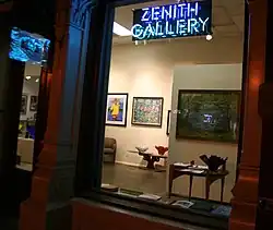 Zenith Gallery has exhibited or represents both regional, national and international artists, including John Grazier, Sylvia Snowden, Robert Freeman, Anne Marchand,[14] Bradley Stevens,[15] Curtis Woody,[16] Christopher Malone,[17] Stephen Hansen,[18] Alan Binstock, Beatriz Blanco, Renee duRocher, Joel D'Orazio, Joan Konkel, Donna McCullough, Davis Morton, Paula Stern, Erwin Timmers, Paul Martin Wolff, and others.