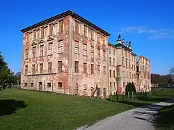 Of the Schloss itself, only the eastern wing and part of the corps de logis remain today.