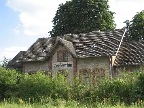 Zerrenthin (German: Bahnhof Zerrenthin) is a railway station[1] in the village of Zerrenthin, Mecklenburg-Vorpommern, Germany. The station lies of the Bützow–Szczecin railway and the train services are operated by Deutsche Bahn.
