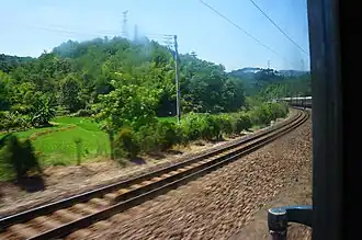 - The Meizhou–Kanshi railway or Meikan railway (梅坎铁路), 147 km (91 mi) in length, between Meizhou, Guangdong and Kanshi, Fujian, completed in 1999 and began operation in September 2000.[1] The Meikan railway was the first rail link between the two provinces.