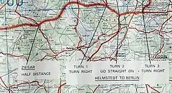 During the Cold War the Western Allies considered Ziesar, specifically Exit 76 from Autobahn 2, the halfway point of the transit route between West Berlin and "mainland" West Germany. Road patrols offering breakdown services and assistance with DDR and Soviet authorities to Allied travelers were provided by Americans based in Berlin east of Ziesar and by the British detachment at Helmstedt west of it.
