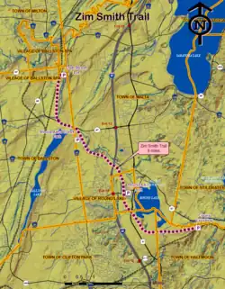 The Zim Smith Trail is the main multi-use trail of a network of trails in Saratoga County, New York. Extending twelve miles, it connects the cities and towns of Mechanicville, Halfmoon, Clifton Park, Round Lake Village, Malta and Ballston Spa. The trail is the route of the former Delaware & Hudson Railroad, originally the Rensselaer & Saratoga Railroad which was completed in 1836. It is the only trail in New York state to be designated a national recreation trail by the U.S. Department of Interior and National Park Service.[1][2]