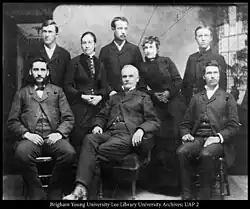 Throughout her life, Card was an academic, political, and spiritual leader, with Maureen Ursenbach Beecher identifying her as "the unquestionable female leader of the Alberta colonies".[10] She served as the "Dean of Women" of Brigham Young Academy,[9] advocated for women's suffrage and polygamist rights on a national level, and interacted with political leaders and businessmen while in Canada. While in the U.S., she met President Rutherford B. Hayes and the first lady, as well as other politicians.[1] Card consistently championed education for all.[21] She held multiple leadership positions within the LDS Church, constantly travelling and speaking with varieties of people. As "Cardston's First Lady", she guided the Mormon colonists; through her role as a church leader for the young women, she led women and girls.[4] She worked to establish good relations with Cardston's neighbors, the Blood Indian Tribe. Her other efforts as a public servant included promoting the performing arts, midwifery, strengthening family units, and developing industries, such as farming, livestock, mills, and factories.[10] She and Charles Card were "honored" by the people they led multiple times, celebrating their achievements within the community.[8] Card in particular was praised by LDS President John Taylor for her efforts in Cardston. She was widowed twice,[1] and lived to be 80 years old.[8]: 400