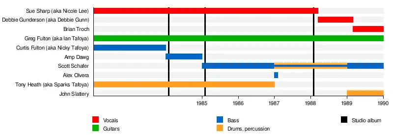 | Past members | Ian Tafoya Sparks Tafoya Nicole Lee Nicky Tafoya Alex Olvera Scott Schafer Debbie Gunn John Slattery |
