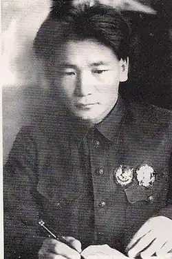 Shijee was born in present-day Bortala, Xinjiang in 1901.[2] He was a partisan fighter in the Outer Mongolian Revolution of 1921 and then became a prison director. In 1923, he joined the MPRP working for the party's Central Committee. Shijee was one of several younger, more radicalized party members from rural areas (others included Tsengeltiin Jigjidjav, Ölziin Badrakh, Bat-Ochiryn Eldev-Ochir, Jambyn Lkhümbe, and Peljidiin Genden) recruited by the Soviets to challenge the authority of the MPRP "old guard".[3] Soviets enrolled him in the Communist University of the Toilers of the East in Moscow and then sent him to agitate Uyghur Hui students and organize supplies of arms and revolutionaries to the Xinjiang region as part of Soviet plans to establish a puppet government there. It was during this period that Shijee first met Badrakh and the two discussed the possibility of creating an autonomous republic of non-Khalkh Mongol regions of Dörvöd (present-day Uvs Province), Tannu Uriankhai, and Xinjiang.[4]