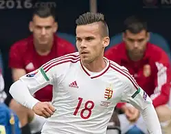 He was selected for Hungary's Euro 2016 squad.[95] On 14 June 2016, Stieber played in the first group match in a 2–0 victory over Austria at the UEFA Euro 2016 Group F match at Nouveau Stade de Bordeaux, Bordeaux, France.[96] He scored the second goal on a 2–0 win over Austria, in the first game of his team for the UEFA Euro 2016.[97] Three days later on 18 June 2016 he played in a 1–1 draw against Iceland at the Stade Vélodrome, Marseille.[98] He also played in the last group match in a 3–3 draw against Portugal at the Parc Olympique Lyonnais, Lyon on 22 June 2016.[99] Steiber later described the UEFA Euro 2016 was an experience that he would never forget.[100]