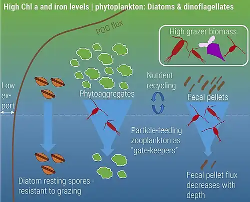 - ^ a b c Halfter, Svenja; Cavan, Emma L.; Swadling, Kerrie M.; Eriksen, Ruth S.; Boyd, Philip W. (2020). "The Role of Zooplankton in Establishing Carbon Export Regimes in the Southern Ocean – A Comparison of Two Representative Case Studies in the Subantarctic Region". Frontiers in Marine Science. 7. doi:10.3389/fmars.2020.567917. S2CID 222003883.