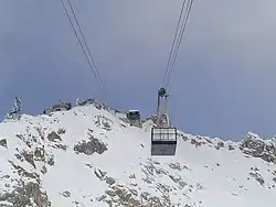 The Zugspitze Glacier Cable Car (German: Zugspitz-Gletscherbahn) is a 1,000 metre long cable car on the Zugspitze, Germany's highest mountain. It was opened in 1992 and links the plateau of the Zugspitzplatt directly with the summit, 360 metres higher. Since the mountain station of the Bavarian Zugspitze Railway was moved from the Schneefernerhaus to the Platt, the Schneefernerhaus and the old cableways, which ran down into the valley from the Platt (the Hangbahn and alte Gletscherbahn) and up to the summit (Gipfelseilbahn), have lost their importance.