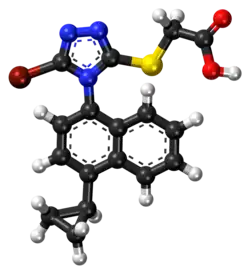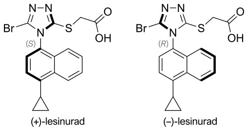 10. ^ Wang J, Zeng W, Li S, Shen L, Gu Z, Zhang Y, et al. (March 2017). "Discovery and Assessment of Atropisomers of (±)-Lesinurad". ACS Medicinal Chemistry Letters. 8 (3): 299–303. doi:10.1021/acsmedchemlett.6b00465. PMC 5346995. PMID 28337320.