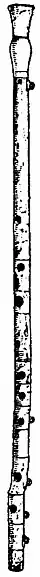 The Phrygian pipes or auloi Elymoi[26] were made of box-wood and were tipped with horn; they were double pipes, but differed from all others in that the two pipes were unequal in length and in the diameter of their bores;[27] sometimes one of the pipes was curved upwards and terminated in a horn bell;[28] they seem to have had a conical bore, if representations on monuments are to be trusted. We may conclude that the archetype of the oboe with conical bore was not unknown to the Greeks; it was frequently used by the Etruscans and Romans, and appears on many has-reliefs, mural paintings and other monuments. For illustrations see Wilhelm Froehner, Les Musées de France, pl. iii., “Marsyas playing the double pipes.” There the bore is decidedly conical in the ratio of at least 1 : 4 between the mouthpiece and the end of the instrument; the vase is Roman, from the south of France. See also Bulletino della Commissione Archeologica Comunale di Roma, Rome, 1879, vol. vii., 2nd series, pl. vii. and p. 119 et seq., “Le Nozze di Elena e Paride,” from a bas-relief in the monastery of S. Antonio on the Esquiline; Wilhelm Zahn, Die schönsten Ornamente und die merkwürdigsten Gemälde aus Pompeji, Herkulaneum und Stabiae (German and French), vol. iii., pl. 43 and 51 (Berlin, 1828–1859).