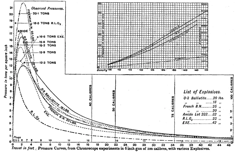 But the most modern results employed with gunpowder are based on the experiments of Noble and Abel (Phil. Trans., 1875–1880–1892–1894 and following years).