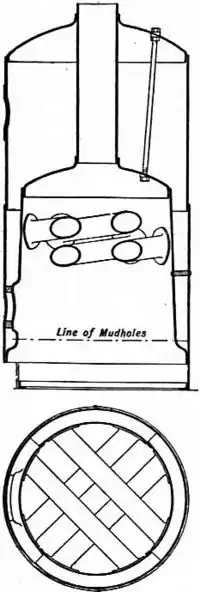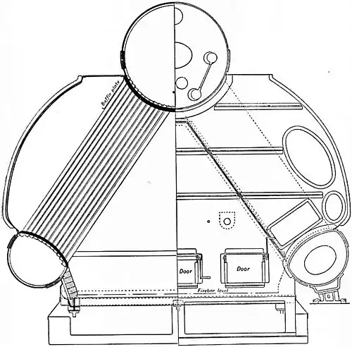 tube plates. The fire-box crown is stayed by vertical stays extending