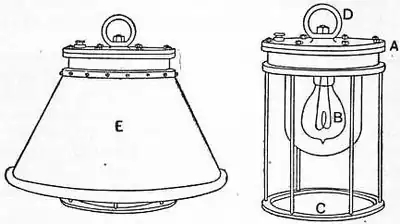 | Fig. 5.—Submarine Electric Lamp, with and without Reflector. | |