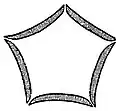 Fig. 94.—Diagrammatic section of a five-carpellary ovary, in which the edges of the carpels, bearing the placentas and ovules o, are not folded inwards. The placentas are parietal, and the ovules appear sessile on the walls of the ovary. The ovary is unilocular. | ||