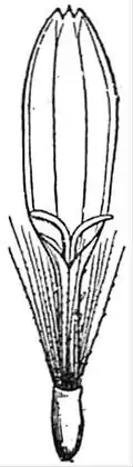 When bracts become coloured, as in Amherstia nobilis, Euphorbia splendens, Erica elegans and Salvia splendens, they may be mistaken for parts of the corolla. They are sometimes mere scales or threads, and at other times are undeveloped, giving rise to the ebracteate inflorescence of Cruciferae and some Boraginaceae. Sometimes they are empty, no flower-buds being produced in their axil. A series of empty coloured bracts terminates the inflorescence of Salvia Horminum. The smaller bracts or bracteoles, which occur among the subdivisions of a branching inflorescence, often produce no flower-buds, and thus anomalies occur in the floral arrangements. Bracts are occasionally persistent, remaining long attached to the base of the peduncles, but more usually they are deciduous, falling off early by an articulation. In some instances they form part of the fruit, becoming incorporated with other organs. Thus, the cones of firs and the stroboli of the hop are composed of a series of spirally arranged bracts covering fertile flowers; and the scales on the fruit of the pine-apple are of the same nature. At the base of the general umbel in umbelliferous plants a whorl of bracts often exists, called a general involucre, and at the base of the smaller umbels or umbellules there is a similar leafy whorl called an involucel or partial involucre. In some instances, as in fool’s-parsley, there is no general involucre, but simply an involucel; while in other cases, as in fennel or dill (fig. 15), neither involucre nor involucel is developed. In Compositae the name involucre is applied to the bracts surrounding the head of flowers (fig. 2, i), as in marigold, dandelion, daisy, artichoke. This involucre is frequently composed of several rows of leaflets, which are either of the same or of different forms and lengths, and often lie over each other in an imbricated manner. The leaves of the involucre are spiny in thistles and in teazel (Dipsacus), and hooked in burdock. Such whorled or verticillate bracts generally remain separate (polyphyllous), but may be united by cohesion (gamophyllous), as in many species of Bupleurum and in Lavatera. In Compositae besides the involucre there are frequently chaffy and setose bracts at the base of each flower, and in Dipsacaceae a membranous tube surrounds each flower. These structures are of the nature of an epicalyx. In the acorn the cupule or cup (fig. 3) is formed by a growing upwards of the flower-stalk immediately beneath the flower, upon which scaly or spiny protuberances appear; it is of the nature of bracts. Bracts also compose the husky covering of the hazel-nut.