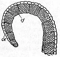 Fig. 69.—Portion of wall of anther of Wallflower (Cheiranthus). ce, Exothecium; cf, endothecium; highly magnified. | |